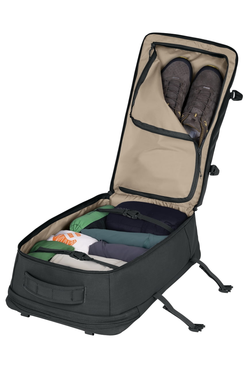Zádový systém je strukturovaný a odvětraný s výplní z 3D síťoviny, která zvyšuje komfort při nošení. Ramenní popruhy lze díky rychloupínacím přezkám jednoduše schovat do samostatné kapsy, takže Ferrino Pathfinder 40 můžeš nosit také jako kufr. Polstrované a zesílené madlo i vyztužené dno zvyšují odolnost při časté manipulaci. Vnitřní uspořádání je navržené tak, aby bylo přehledné a funkční při každém typu cesty.